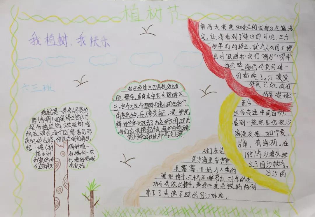 每一张手抄报皆是全班同学智慧的结晶,他们以植树节活动为切入点,把“植树、护树、爱绿”的生态文明观念融入在每一幅画与字里行间之中。